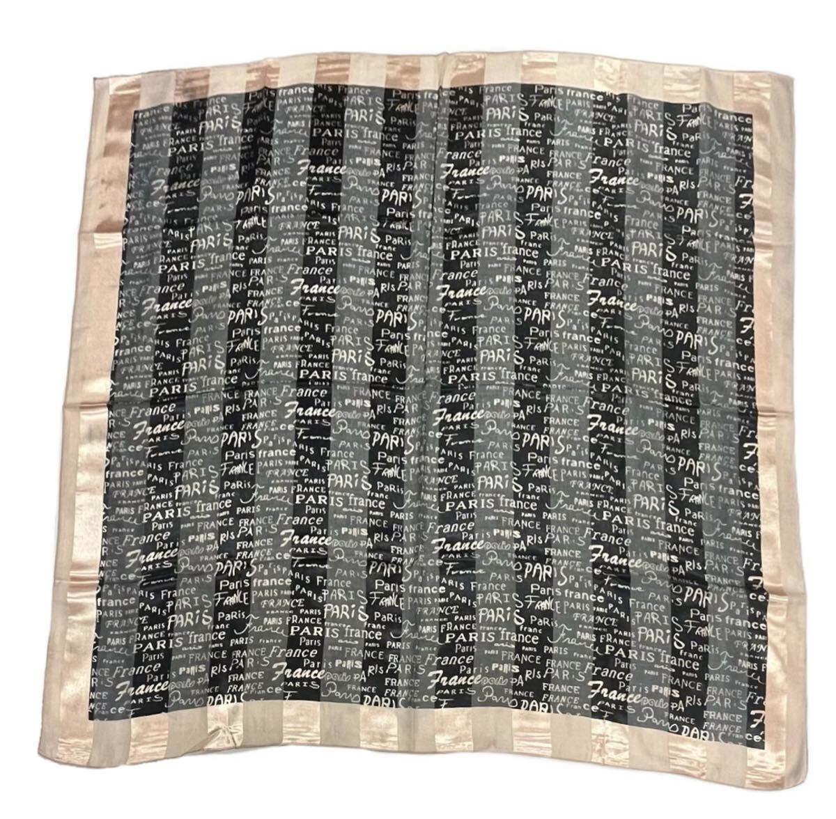 - 超大判★(101cm)France Parisロゴ スカーフ/ピンクオレンジ×黒系 未使用