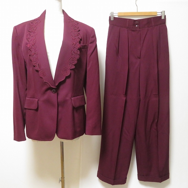 > #anc ケンゾー シティ KENZO CITY パンツスーツ セットアップ 38 ボルドー 刺繍 花柄 ヴィンテージ レディース [967187]