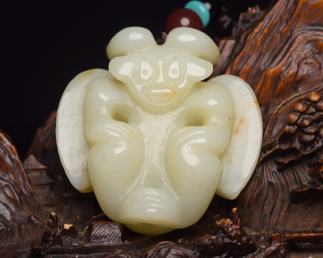 - 【超珍館蔵】和田玉製 細密彫 太陽神 置物 賞物 古賞物 古董品 古美術品 時代物 旧家蔵出 稀少珍蔵品