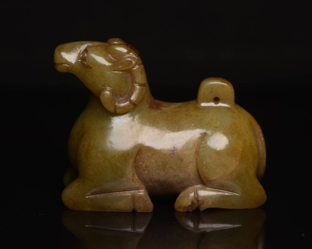 - 【超珍館蔵】和田玉製 細密彫 玉羊 置物 賞物 古賞物 古董品 古美術品 時代物 旧家蔵出 稀少珍蔵品
