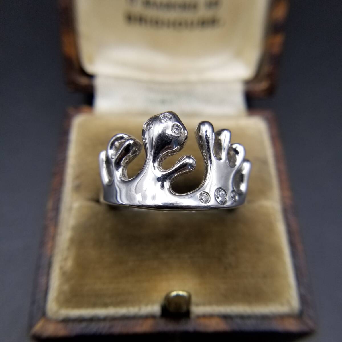 > モダニスト 森 トカゲモチーフ 925 シルバー リング 銀 指輪 クリアストーン 煌めき 個性派ジュエリー Y24-M