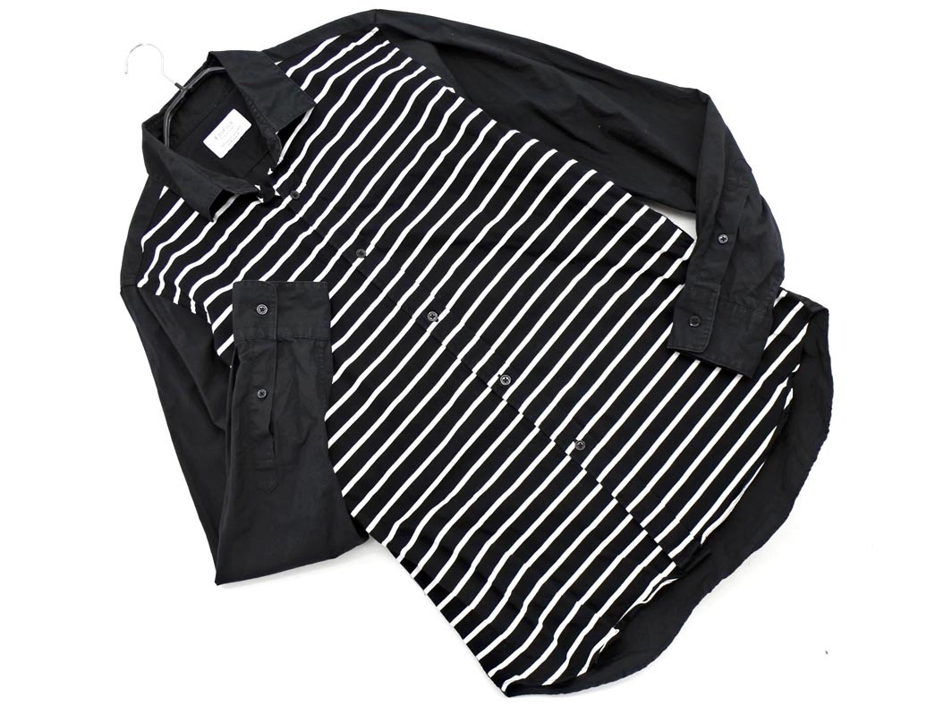 > EDIFICE エディフィス 切替 ボーダー シャツ size48/黒x白 ◇■ ☆ fib2 メンズ