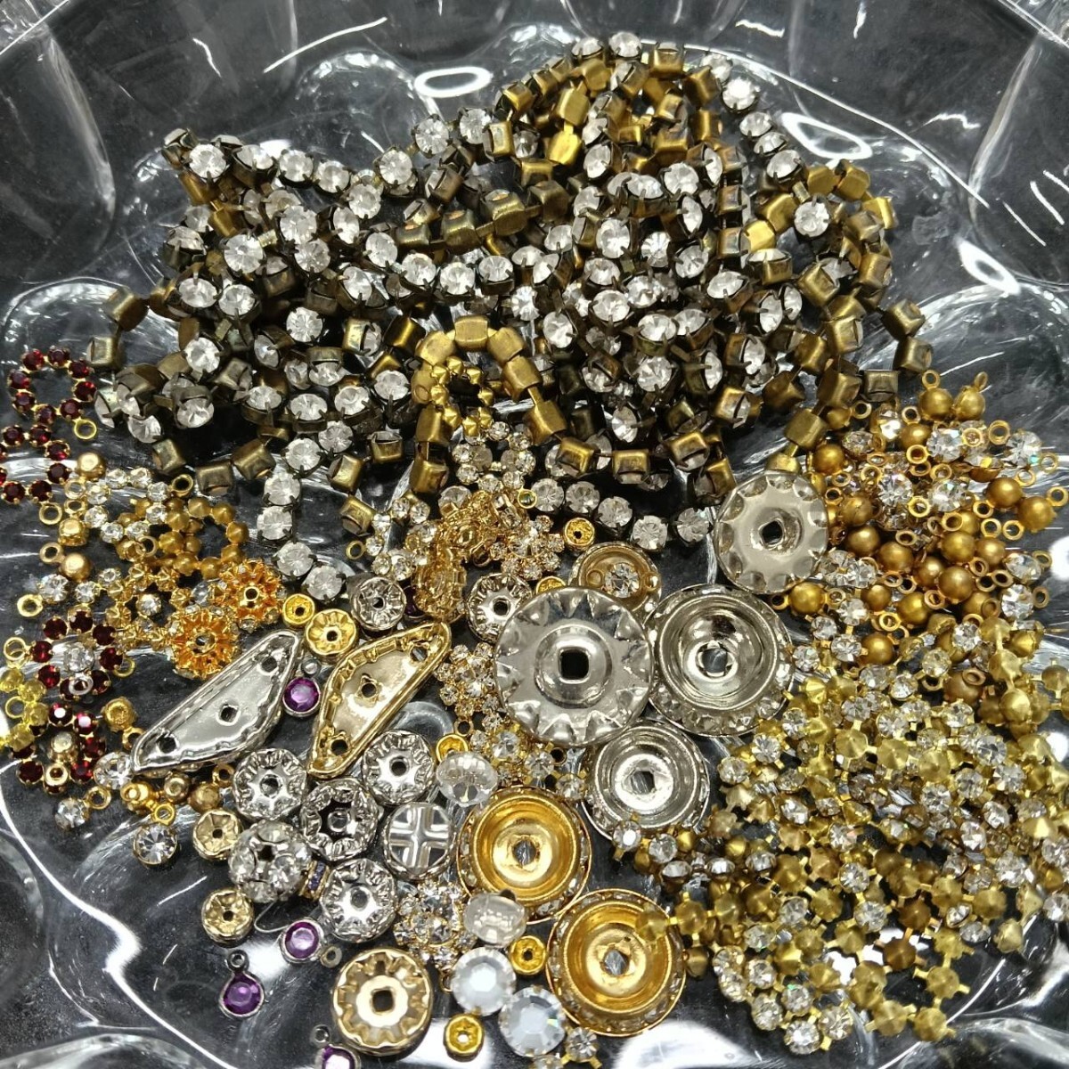 - L81 ☆ほぼ未使用 SWAROVSKI スワロフスキー ヴィンテージ ルース 約104g パーツ カップチェーン 連爪 クリスタル×ゴールド色 裸石 B-499