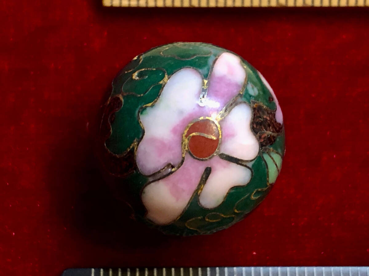 > ¶!¶ 有線七宝焼ワールド - 特級品特大丸1個 ¶!¶ Φ20㎜ 金線に深緑色釉ピンク花祥雲紋様 手作り 手芸 工芸 インテリア ペンダント