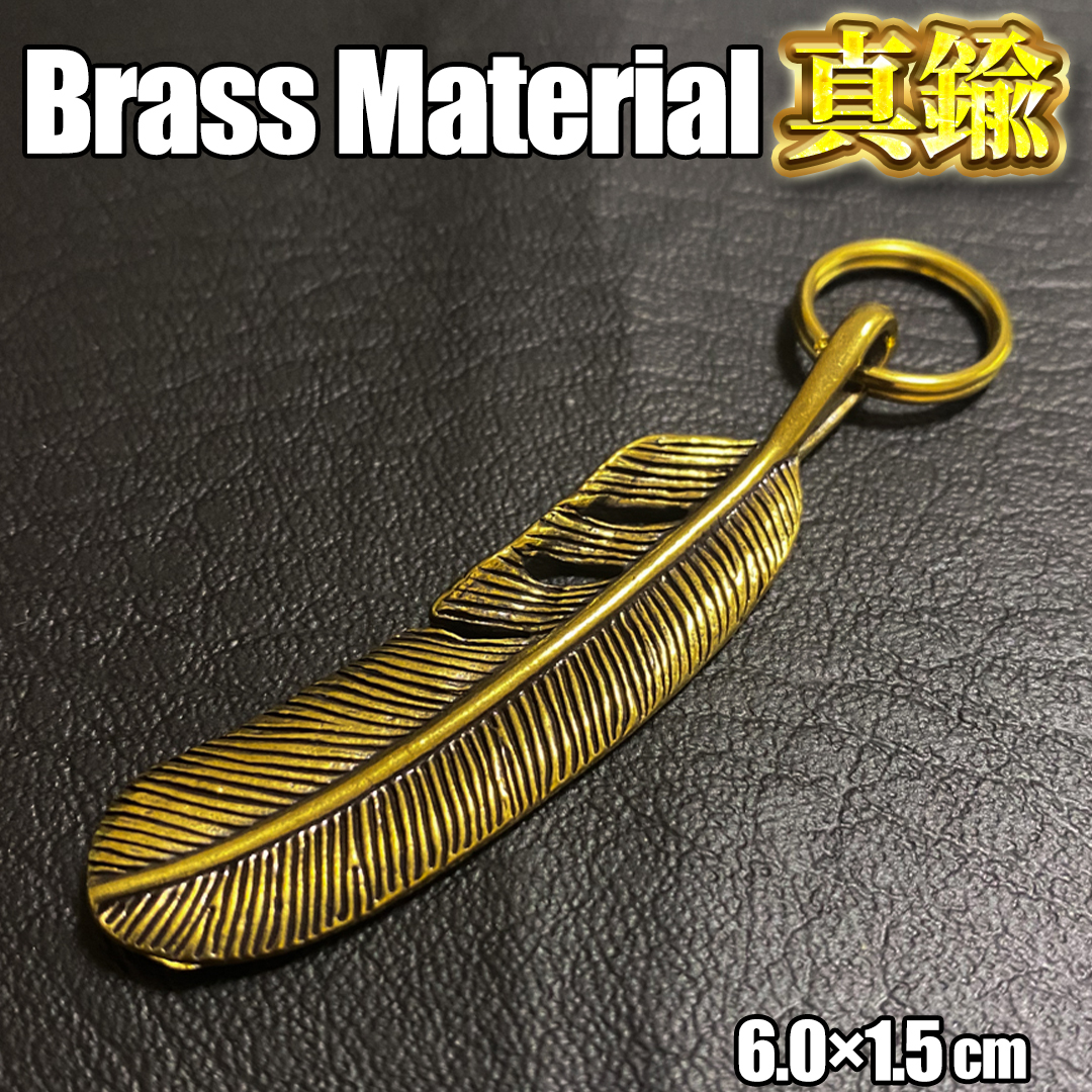 - ◆新品/送料無料◆ 真鍮 キーホルダー パーツ アクセサリー アンティーク風 翼 羽 フェザー 金ゴールド