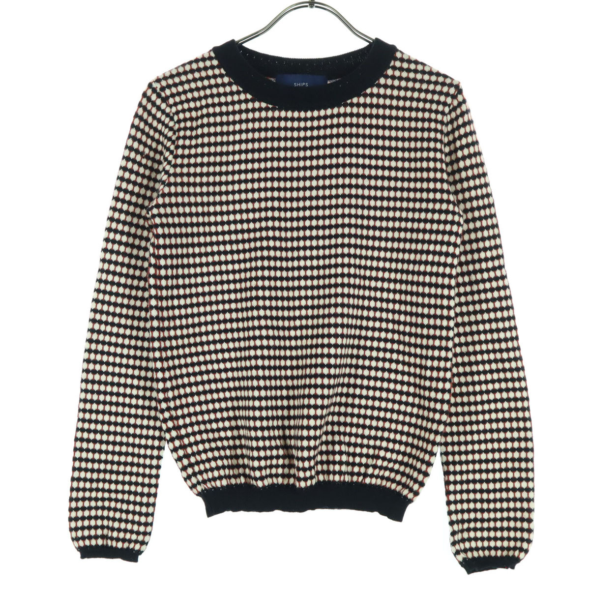 美品 SHIPS シップス 日本製 総柄 長袖 ニット 36 ブラック系 レディース拍卖