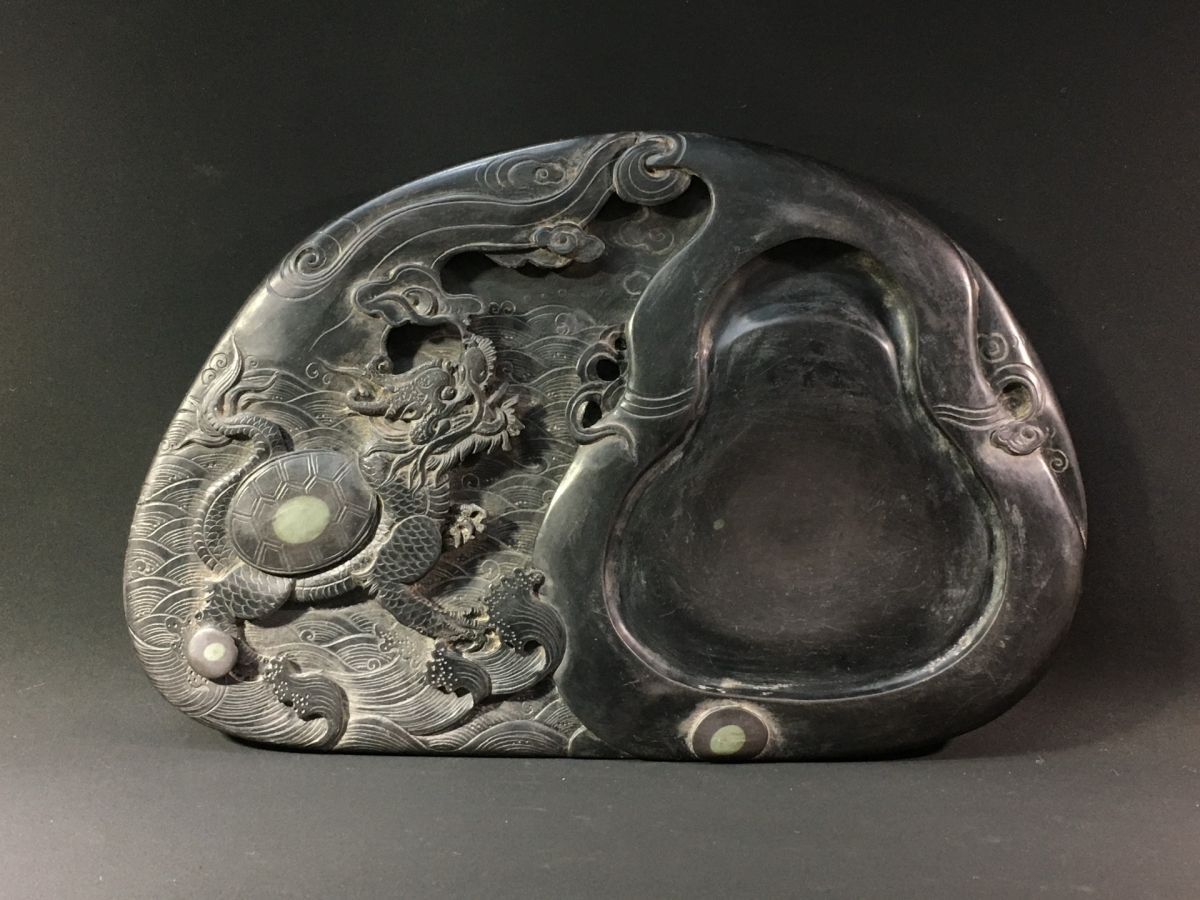 - 永し 清時代 呉昌碩銘 端石彫 滝亀賜福硯 端渓硯 極細工 書道具 文房具 置物擺件 古美術品 時代物 古董品 収集 旧家蔵出 中国唐物 A219