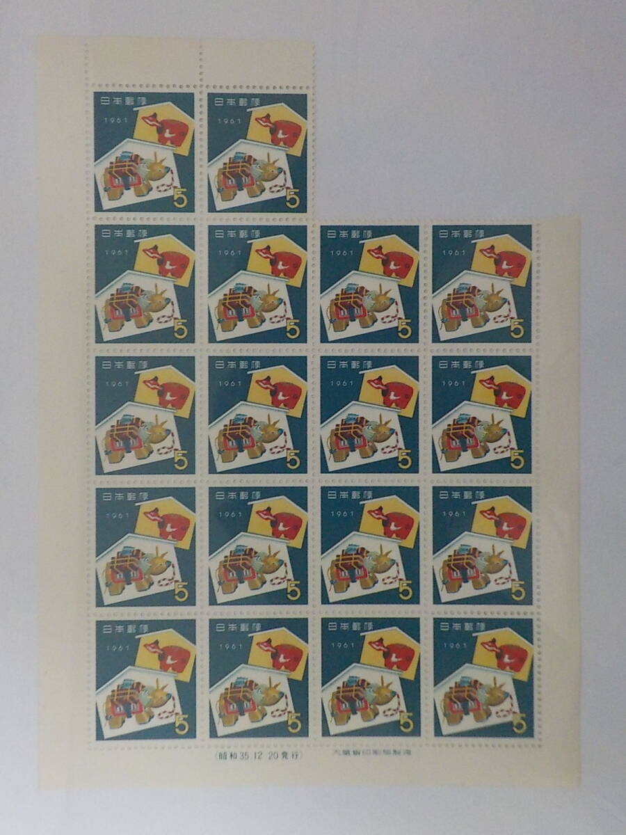 - お年玉郵便切手 1961年 赤べこと金のべこっこ / 5円切手×18枚 未使用