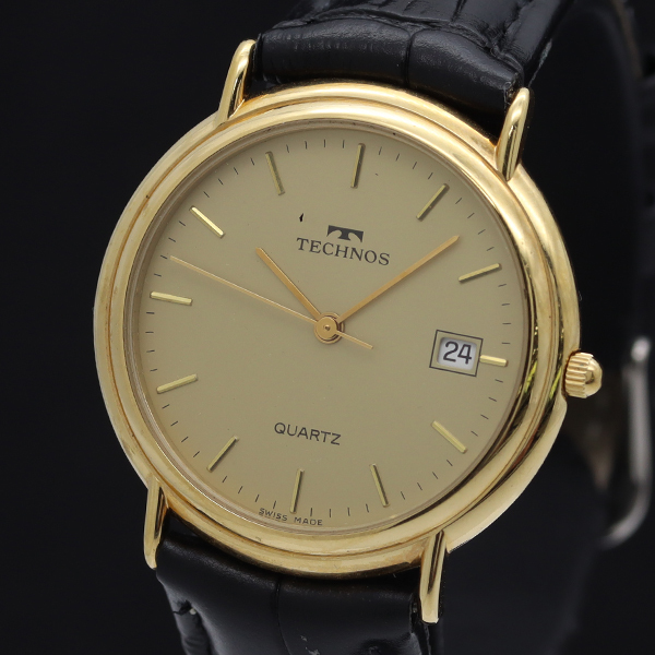 - テクノス 61061 QZ デイト ゴールド文字盤 メンズ腕時計 2000000 NSK INK