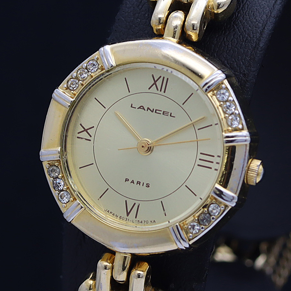 - 稼動 ランセル QZ 石付 ゴールド文字盤 レディース腕時計 2000000 NSK MTM