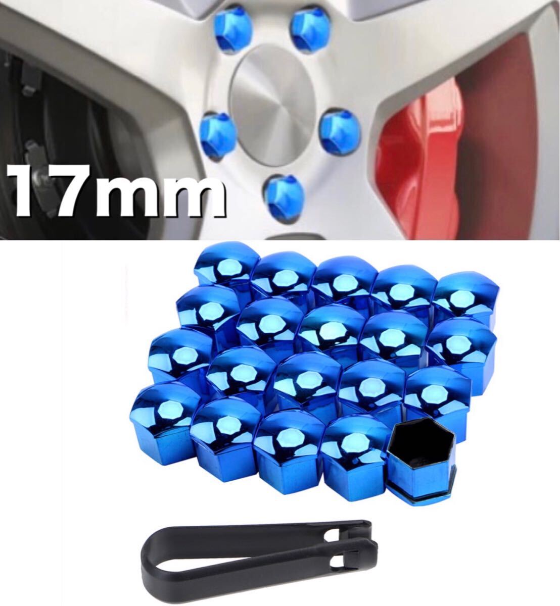 - 車 ホイールナットカバー ナットキャップ 17mm クローム car 青 ドレスアップ