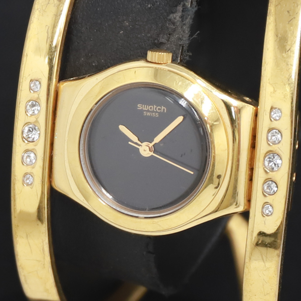 - QZ 石付 スウォッチ バングルウオッチ アイロニー 黒文字盤 レディース腕時計 2000000 NSK KRK