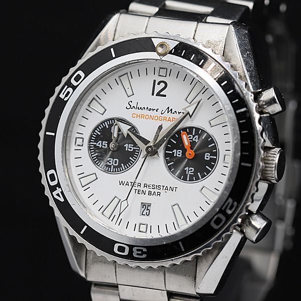 - サルバトーレマーラ QZ SM-11133 白文字盤 クロノグラフ デイト ラウンド メンズ腕時計 TCY2000000 NSK