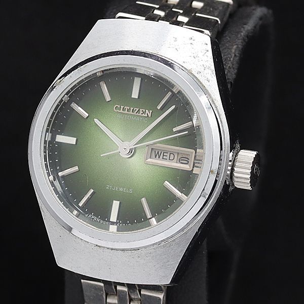 - シチズン 4-662164 AT/自動巻き グリーン文字盤 デイデイト カットガラス レディース腕時計 DOI 2000000 NSK