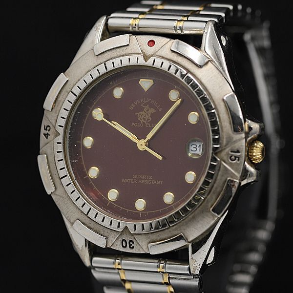 - 稼働 良品 ビバリーヒルズ QZ ワインレッド文字盤 デイト ラウンド メンズ腕時計 TCY2000000 NSK