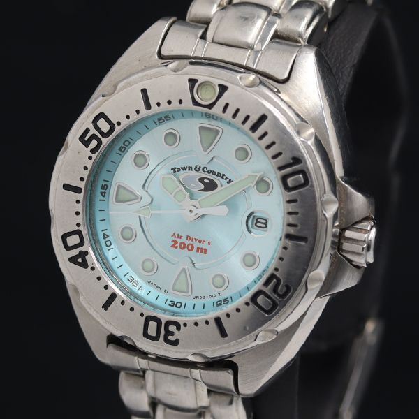 - 稼動 良品 タウン&カントリー QZ UR00-00 デイト アイスブルー文字盤 レディース腕時計 YUM 2000000 NSK
