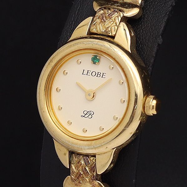 - 稼働 良品 リオベ QZ アイボリー文字盤 石付 ラウンド レディース腕時計 KYM