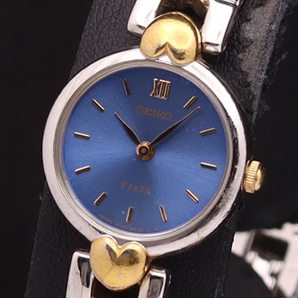 - セイコー QZ 1F20-0K50 ティセ ラウンド ブルー文字盤 レディース腕時計 YSD