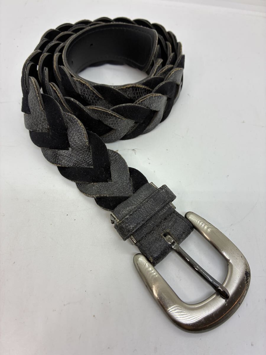 - メンズ 編み込み レザー ベルト メッシュ ブラック
