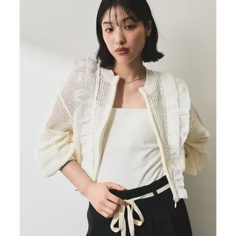 - 定価13,970円 新品 ADAM ET ROPE' FEMME アダムエロペ ラッフルメッシュ編みカーディガン