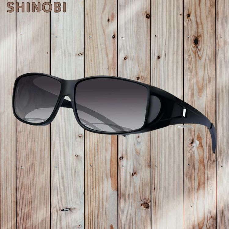> メガネの上からかけられる オーバーサングラス スポーツ 偏光サングラス オーバーグラス UV400 マットブラック+グラデーショングレー