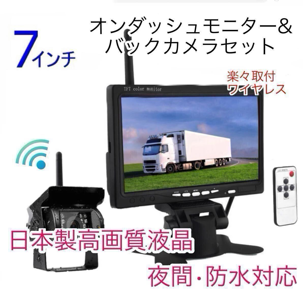- トラック バス 無線 ワイヤレス バックカメラ セット 7インチ ルームミラー モニター バックモニター 防水 24V 高画質 日本製