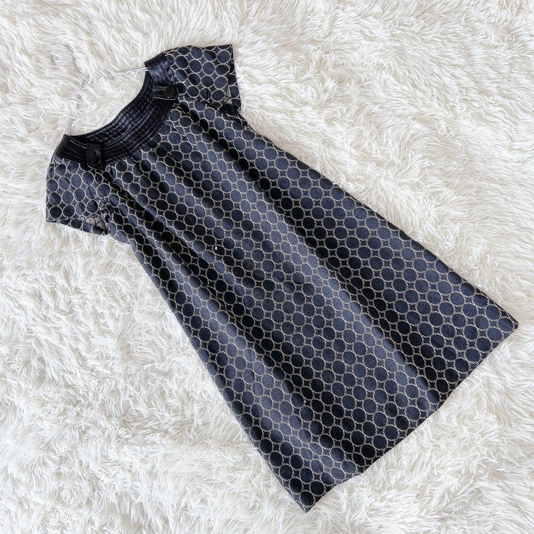 - 日本製 《組曲》(2) 異素材切替フレアワンピース サークル柄 フェイクレザー