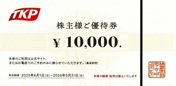 - ネコポス送料込即決!TKP 株主優待券 10,000円分/1万円分 ティーケーピー ISHINOYA熱海/石のや伊豆長岡/レクトーレ熱海ほか 複数あり