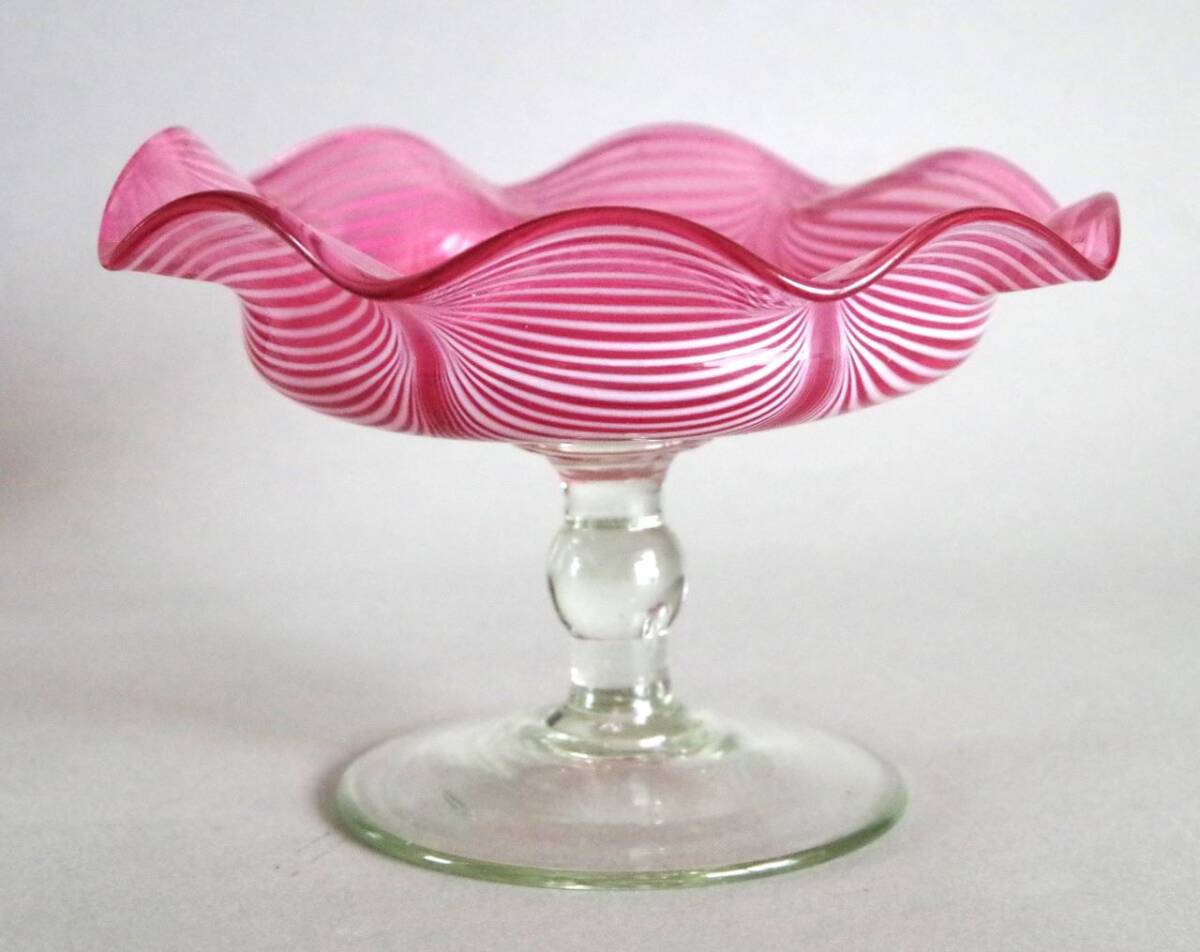 - ★★希少 当時物 和ガラス 金赤 明治~大正 かき揚げ文様 コンポート 氷コップ他 № 68☆