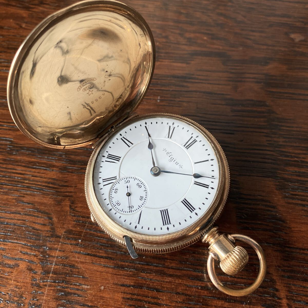 > ハイグレード エルジン Elgin G.M.Wheeler 18サイズ 17石 金張 ハンターケース 懐中時計 1900年 ダブルサンク文字盤