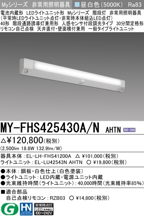 - 三菱 階段非常灯40形 人感センサー付 MY-FHS425430A/N AHTN