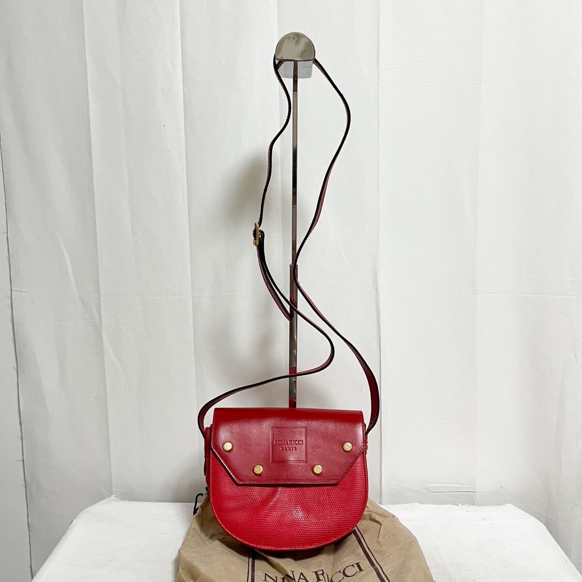 - 和837★ NINA RICCI ニナリッチ ショルダーバッグ 斜めがけ ミニバッグ レッド レディース