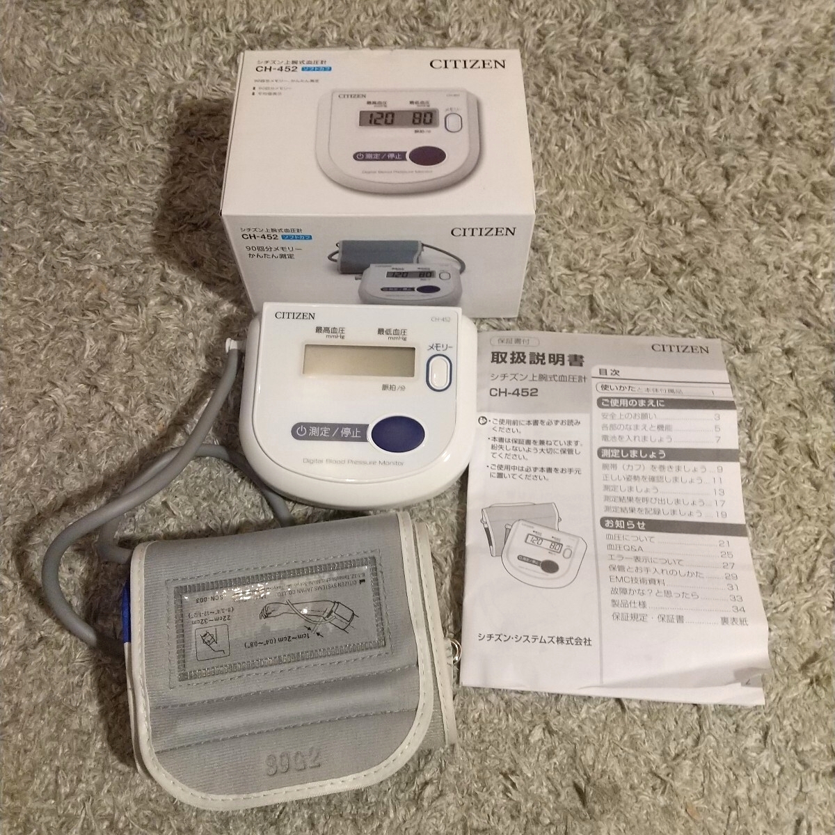 - 動作確認済み シチズン 上腕式血圧計 CH-452 中古現状品 CITIZEN メモリー90回 かんたん測定 血圧計 説明書