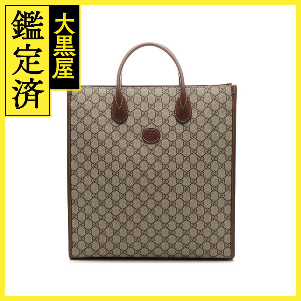 > GUCCI グッチ GGスプリーム インターロッキングG ミディアムトート ベージュ/ブラウン コーティングキャンバスレザー 674155