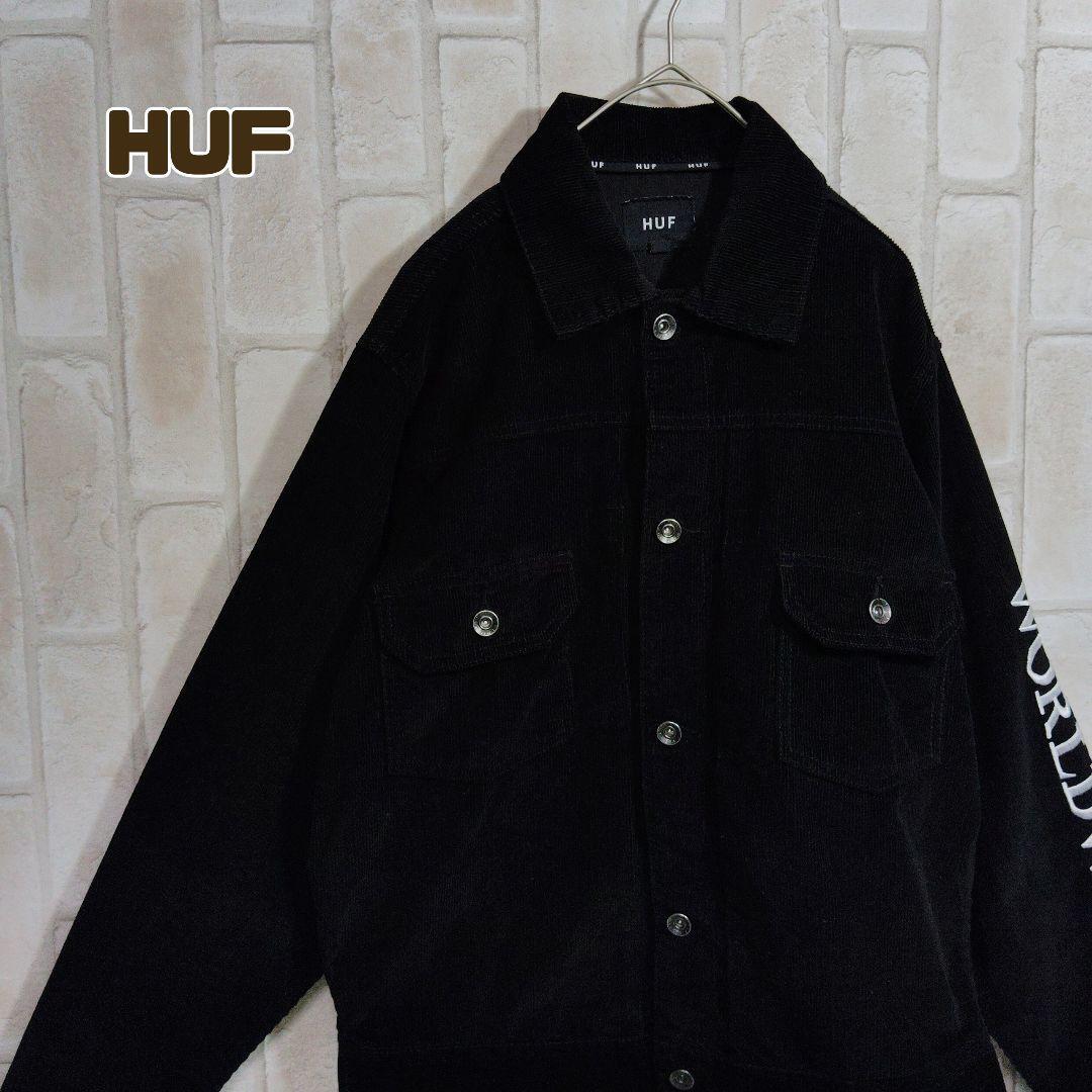 - ハフ シャツ 長袖 コーデュロイ 黒 刺繍