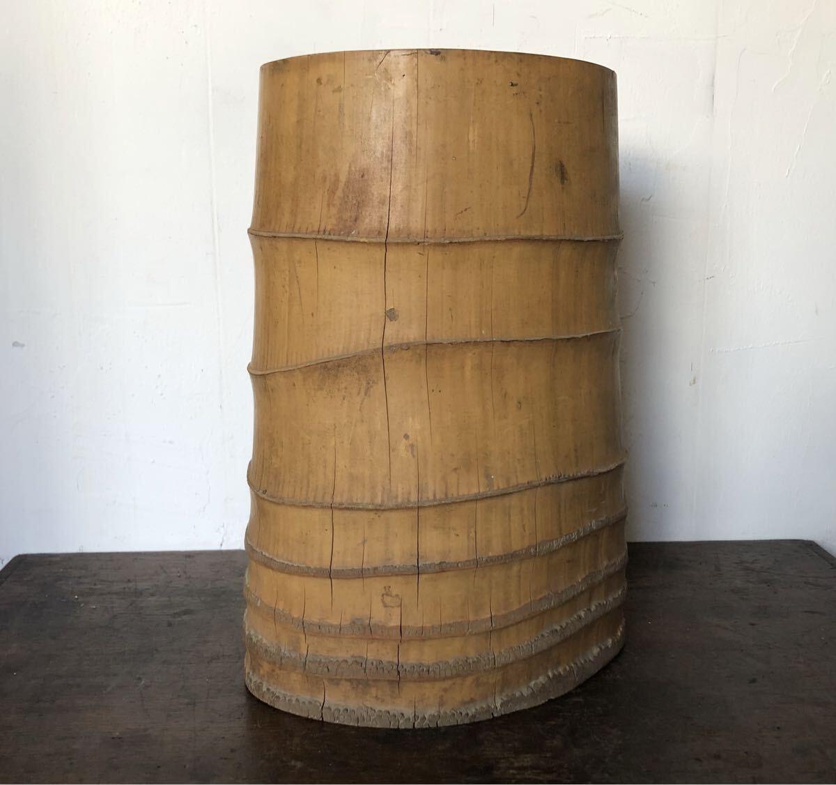 - 竹製 花器/花入/花瓶/生花/竹根/華道具/茶道具/竹工芸/銅製/レトロ/ アンティーク
