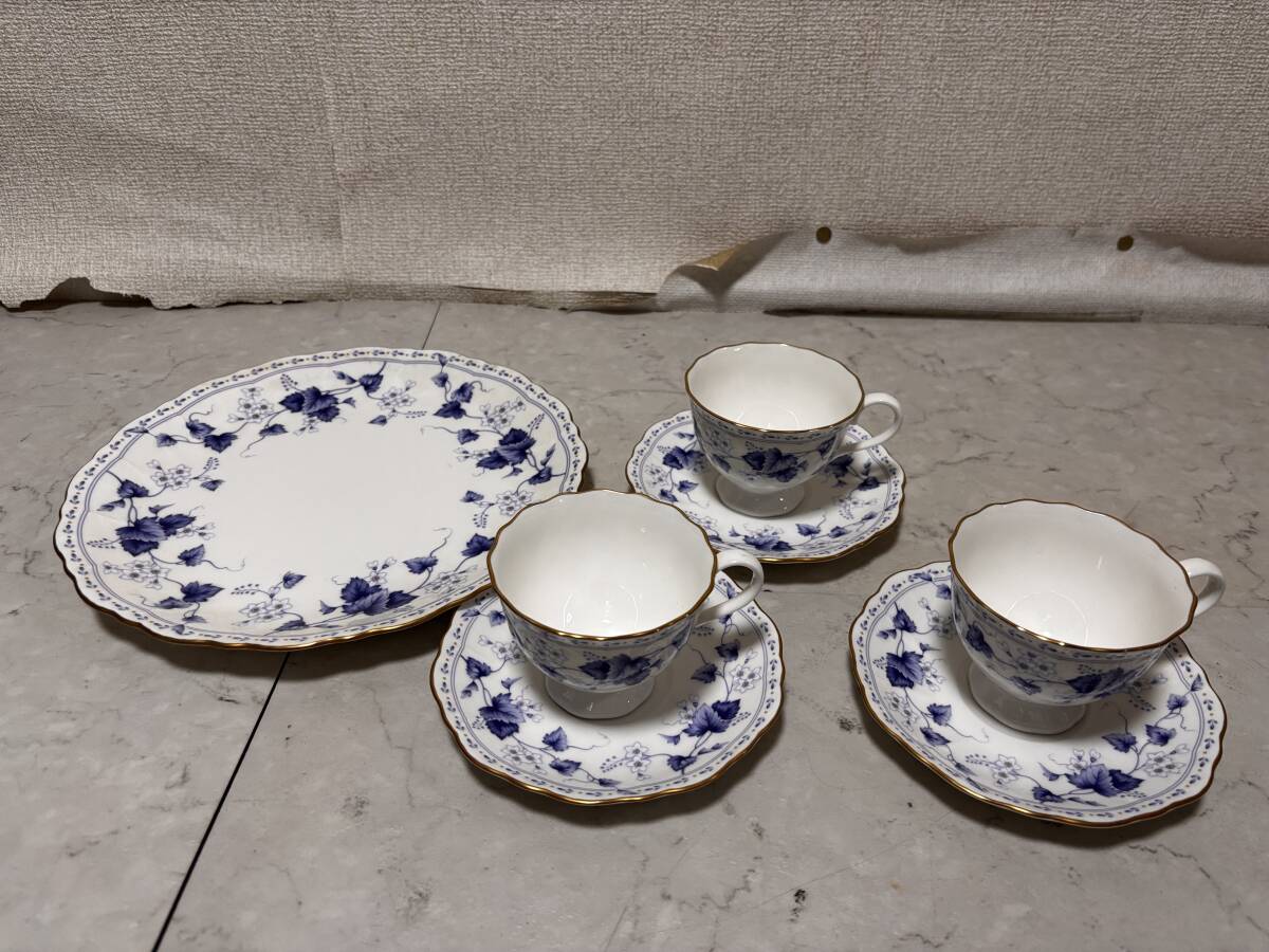 - d4716◆ナルミ ソラリア 大皿/カップ&ソーサー3客 セット◆金彩/青花柄