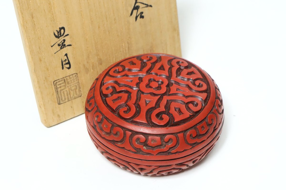 ・豊月 堆朱 内金 香合 共箱 /香道具 合子