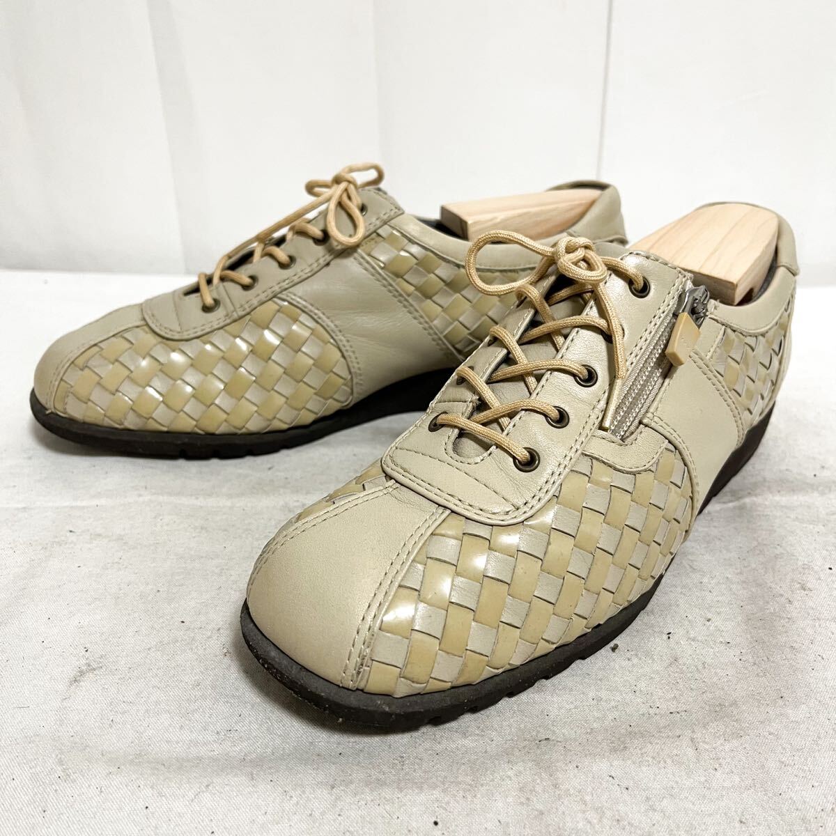 - 和839★ asics pedala アシックス ペダラ スニーカー シューズ 編み込み ジップ 23.5 EEE ベージュ レディース