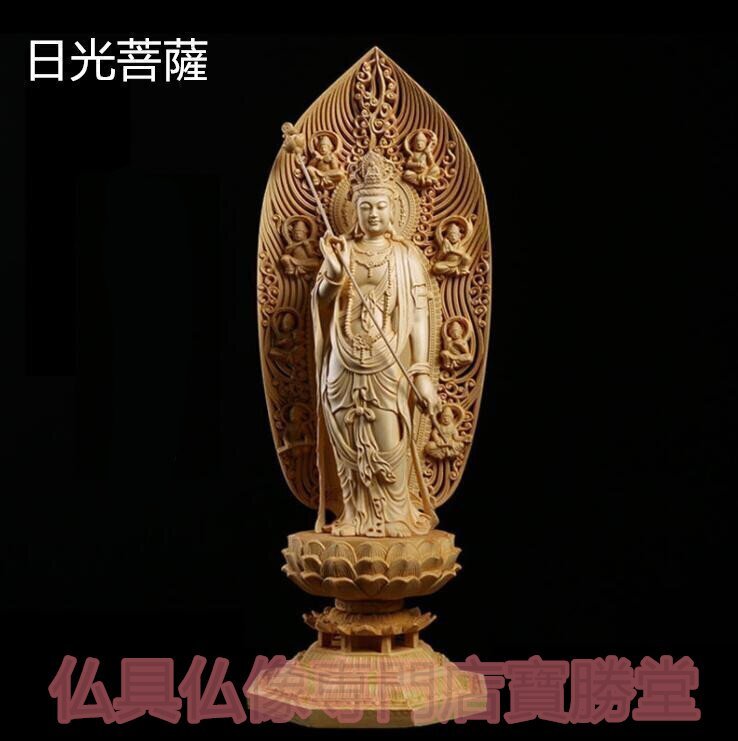 - 【寶勝堂】総檜材 仏教工芸品 木彫仏教 精密彫刻 極上品 仏師で仕上げ品 日光観音菩薩立像 高43cm