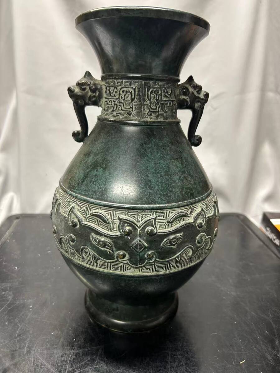 - 旧家収蔵品 青銅器花瓶 花器 置物 飾り物 花道具 飾壺 飾壷 古賞物 古美術 時代物 希少 美品 重さ2238g