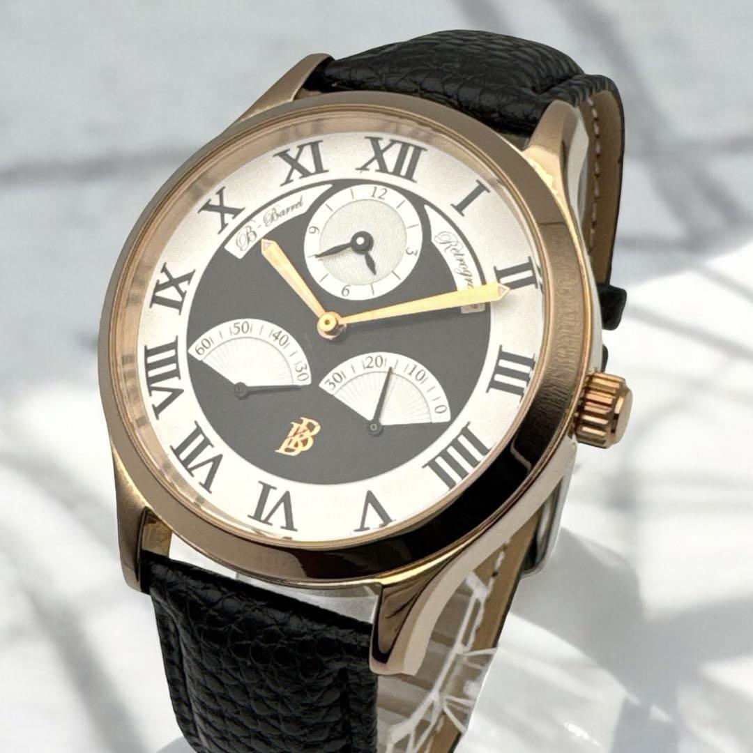 > 稼働品 B-Barrel ビーバレル 自動巻き レトログラード秒針 デュアルタイム 腕時計 メンズウォッチ シースルバック