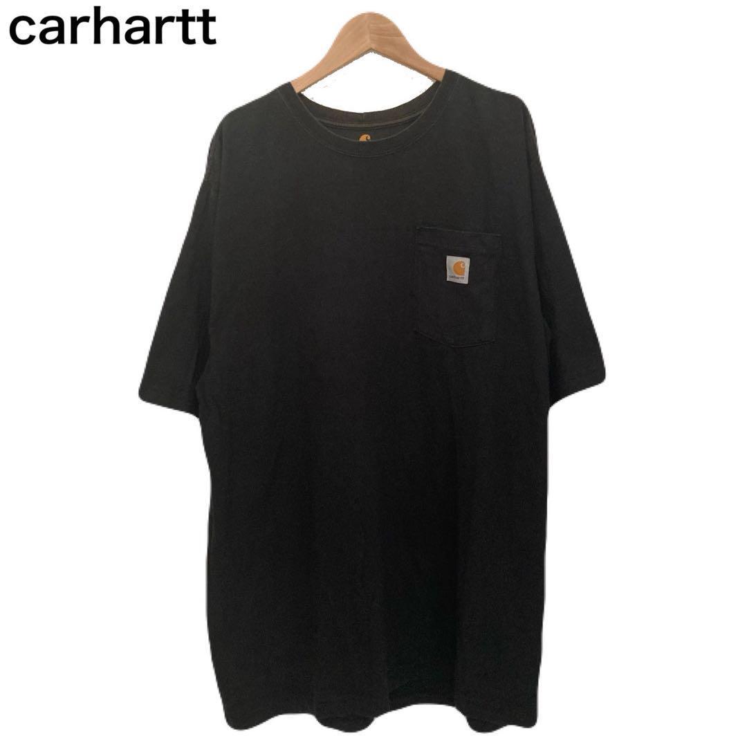 - カーハート ワンポイント ロゴ刺繍 Tシャツ アメカジ ブラック Tシャツ XL