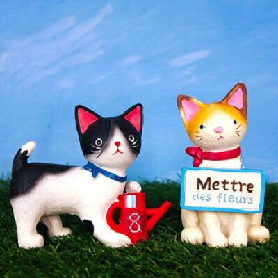 - 猫の置物 ねこちゃん2品セット Y02 5E2808・11 オーナメント ミニチュアマスコット フラワー ガーデンマスコット