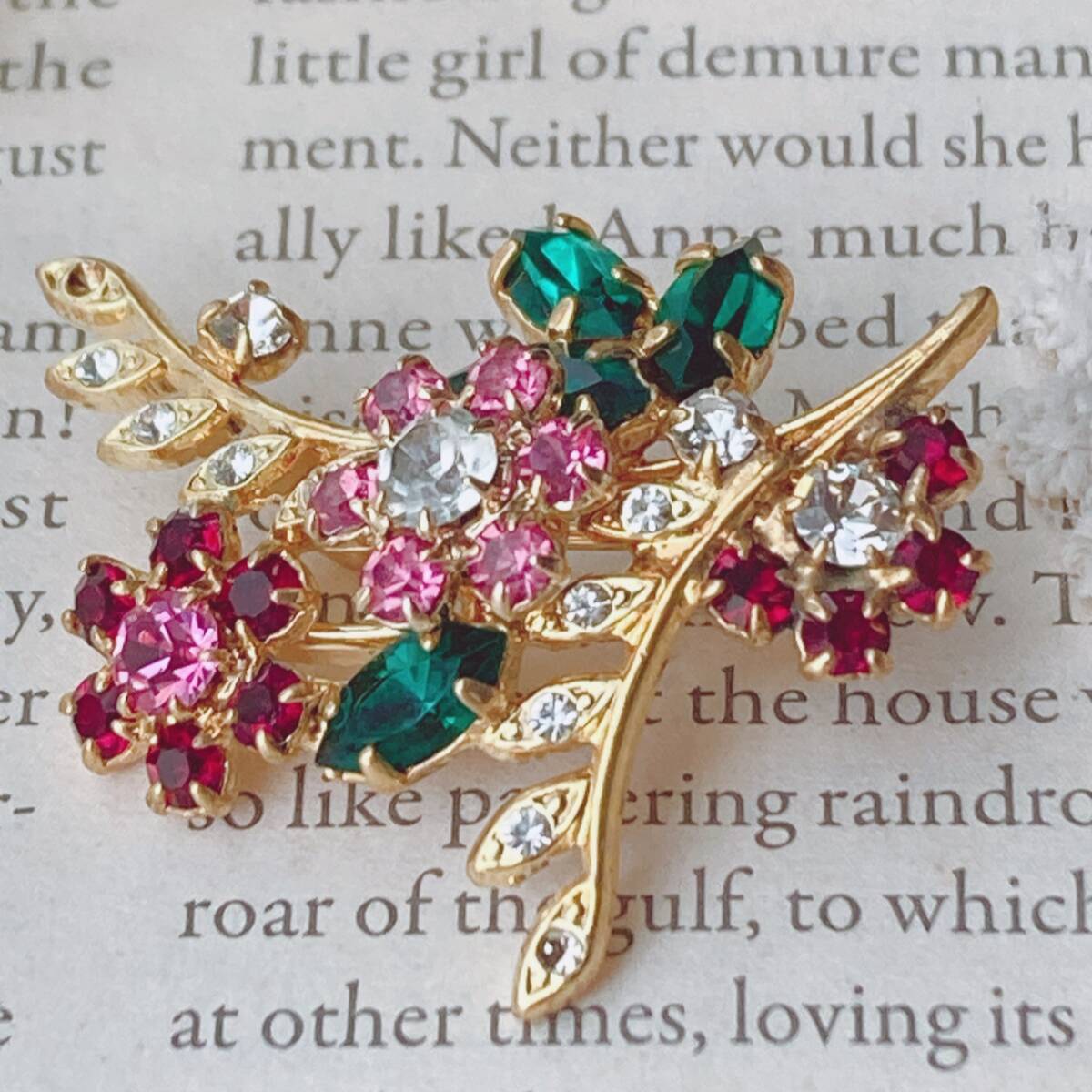 > ブローチ キラキラガラス カラフル お花 ゴールドトーン 落石あり美品☆vintage jewelry accessories F0116