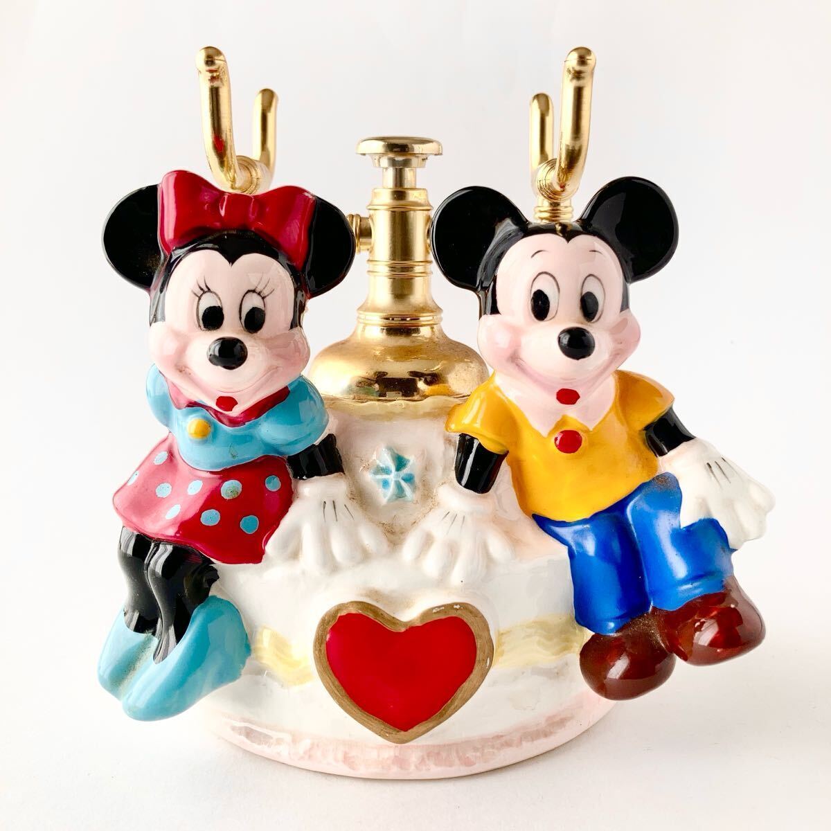 - ヴィンテージ陶器製ディズニーオルゴール☆昭和レトロ ミニーマウス ミッキーマウス 正規品 スモールワールド 置物 受話器置き 電話台
