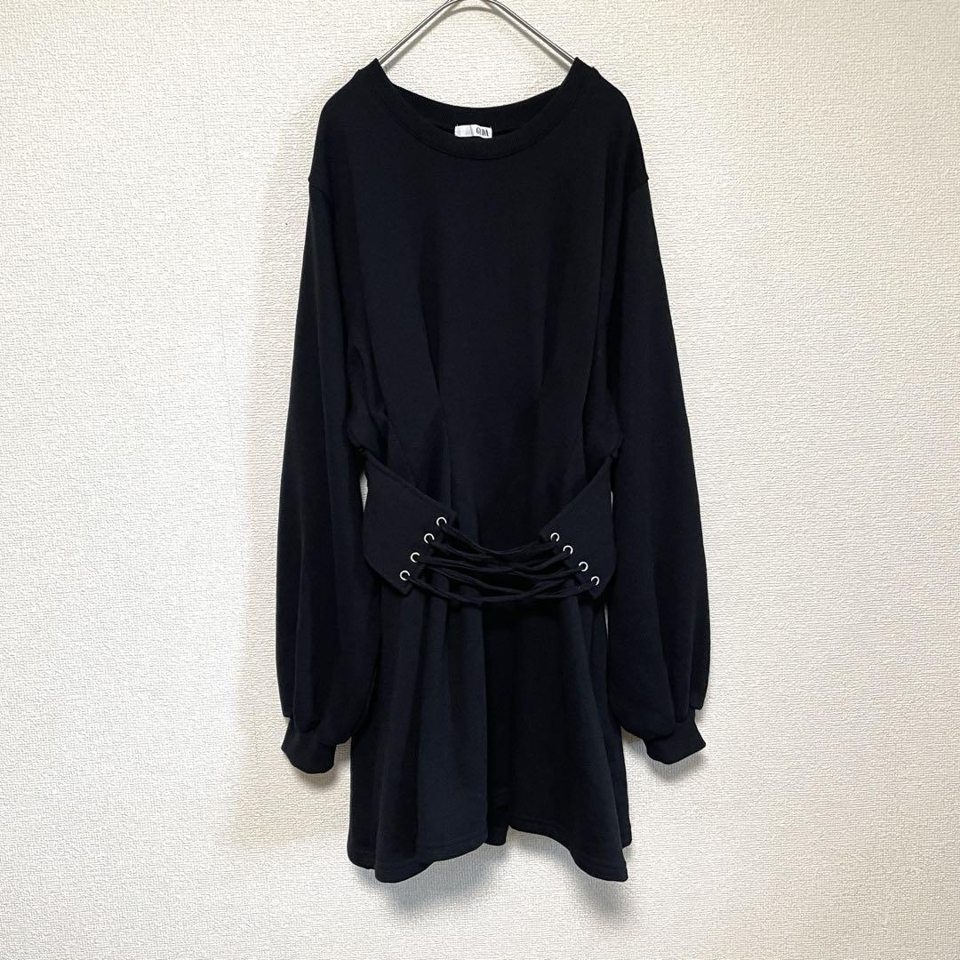 - qq136 GYDA ジェイダ/コルセットスウェットフレアワンピース/黒