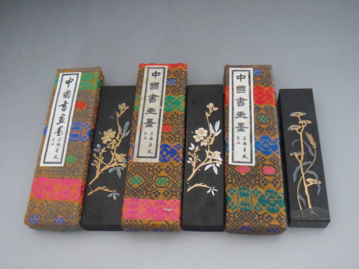 - 初だし★中国墨 3本まとめ 約98g 鉄斎翁書畫寶墨 紫玉光 上海墨廠出品 油煙101 徽歙曹素功堯千氏 ★検)文房四宝・文房具・書道具