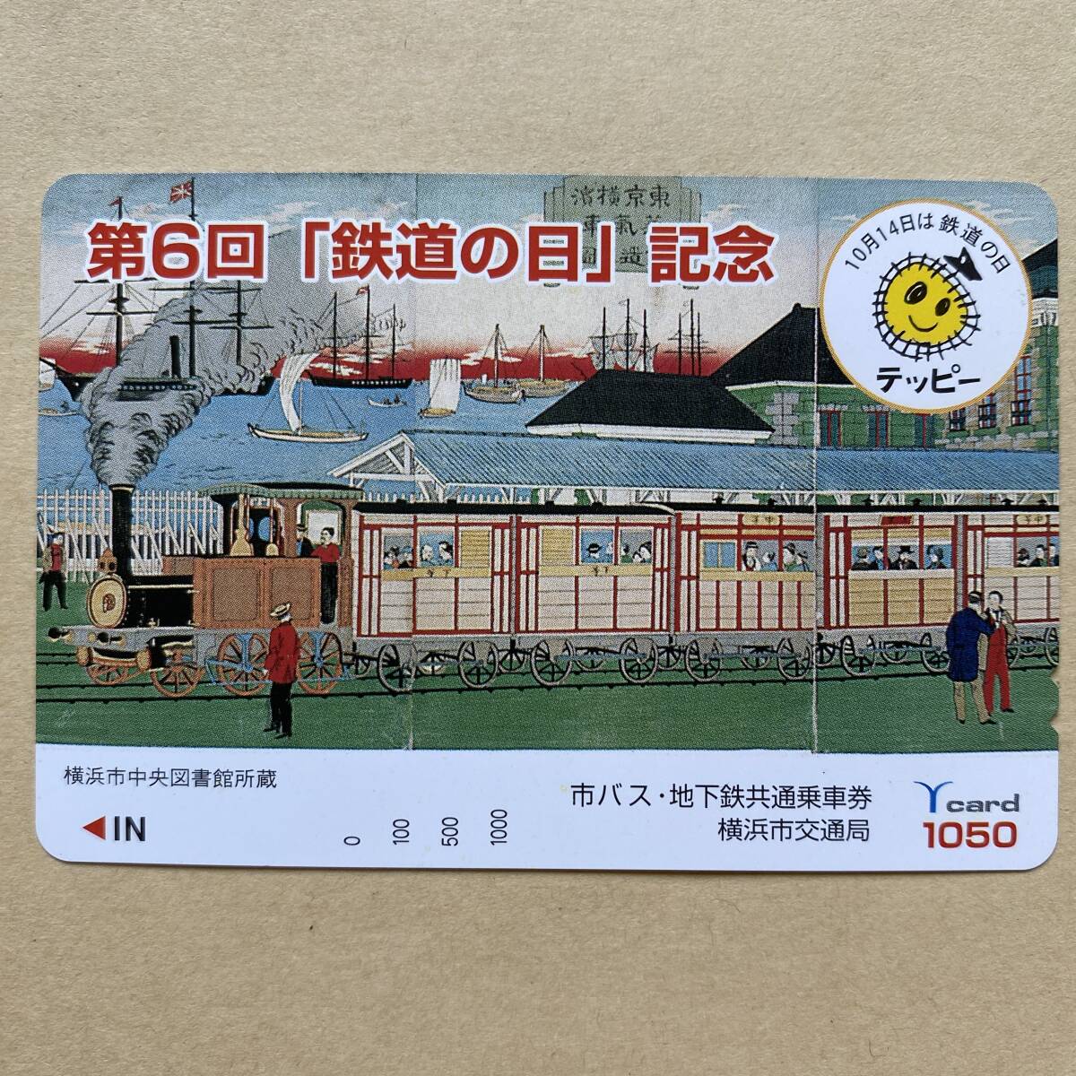 - 【未使用】 浮世絵Yカード 額面1,050円 横浜市交通局 東京横浜蒸気車鉄道之図 歌川広重(三代) 第6回「鉄道の日」記念