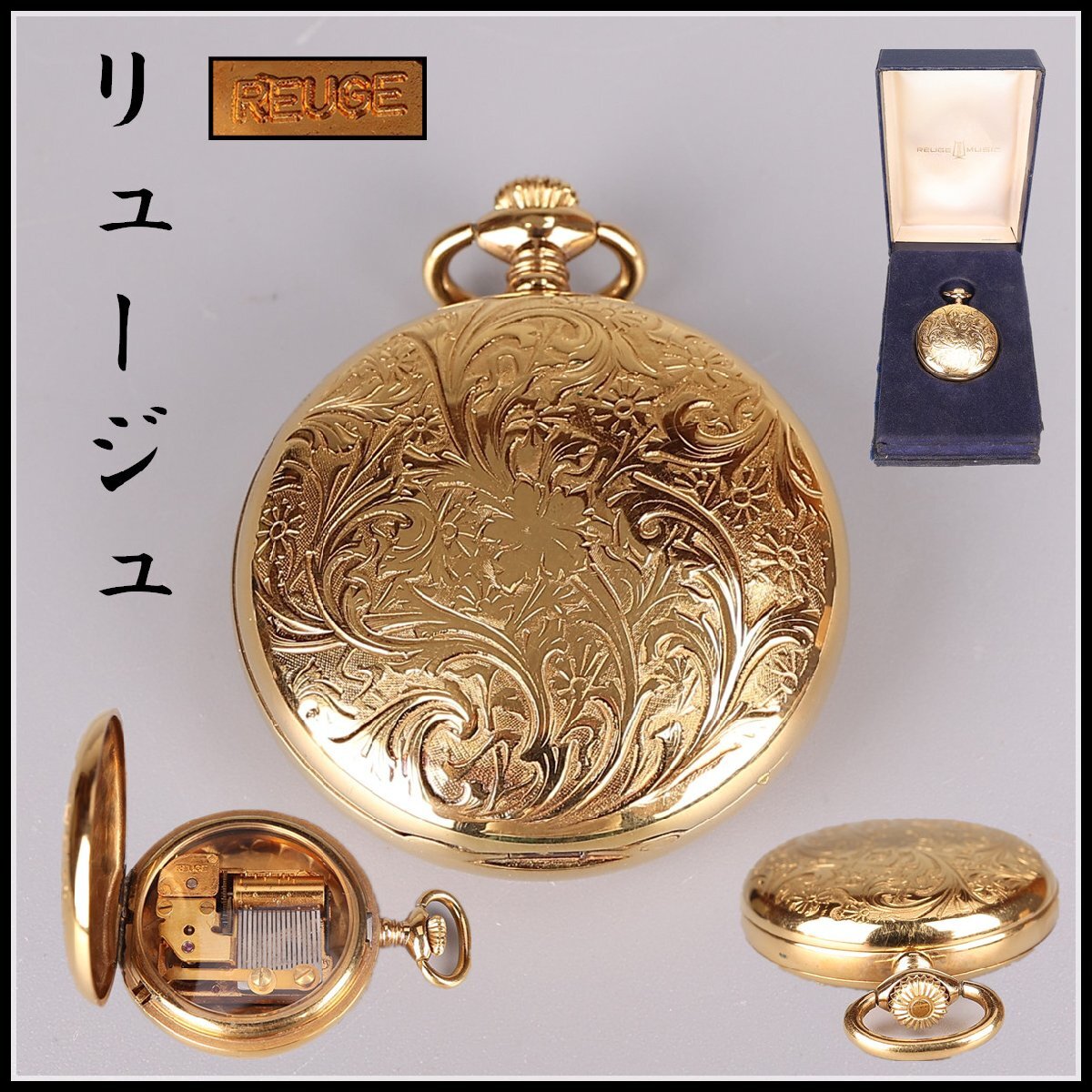 【吉】ZD099 REUGE 【リュージュ】 スイス製 懐中時計 オルゴール/共箱付 稼働美品K!